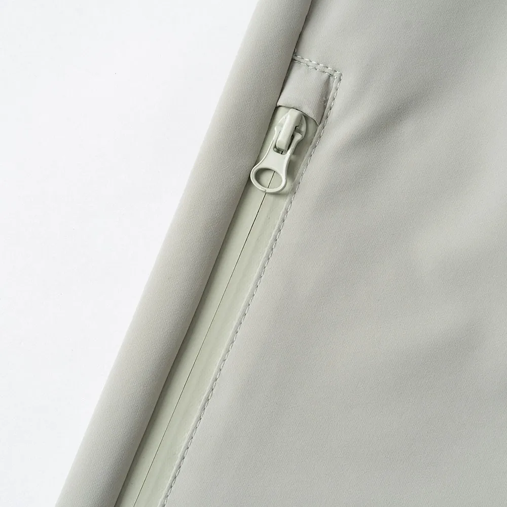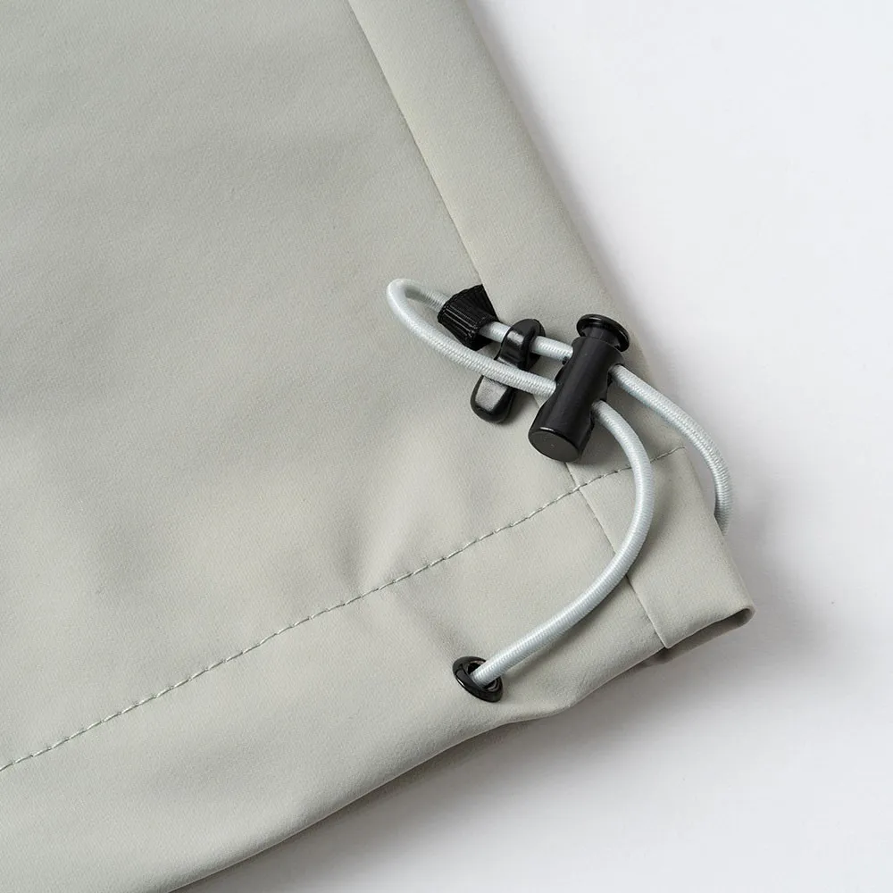 Функциональные детали включают в себя потайные карманы на молнии в боковых швах для надежного хранения мелких предметов и регулируемые манжеты на шнурках, которые можно плотно затянуть вокруг лодыжек, чтобы предотвратить попадание посторонних предметов, или отрегулировать для другой посадки в соответствии с различными типами телосложения.