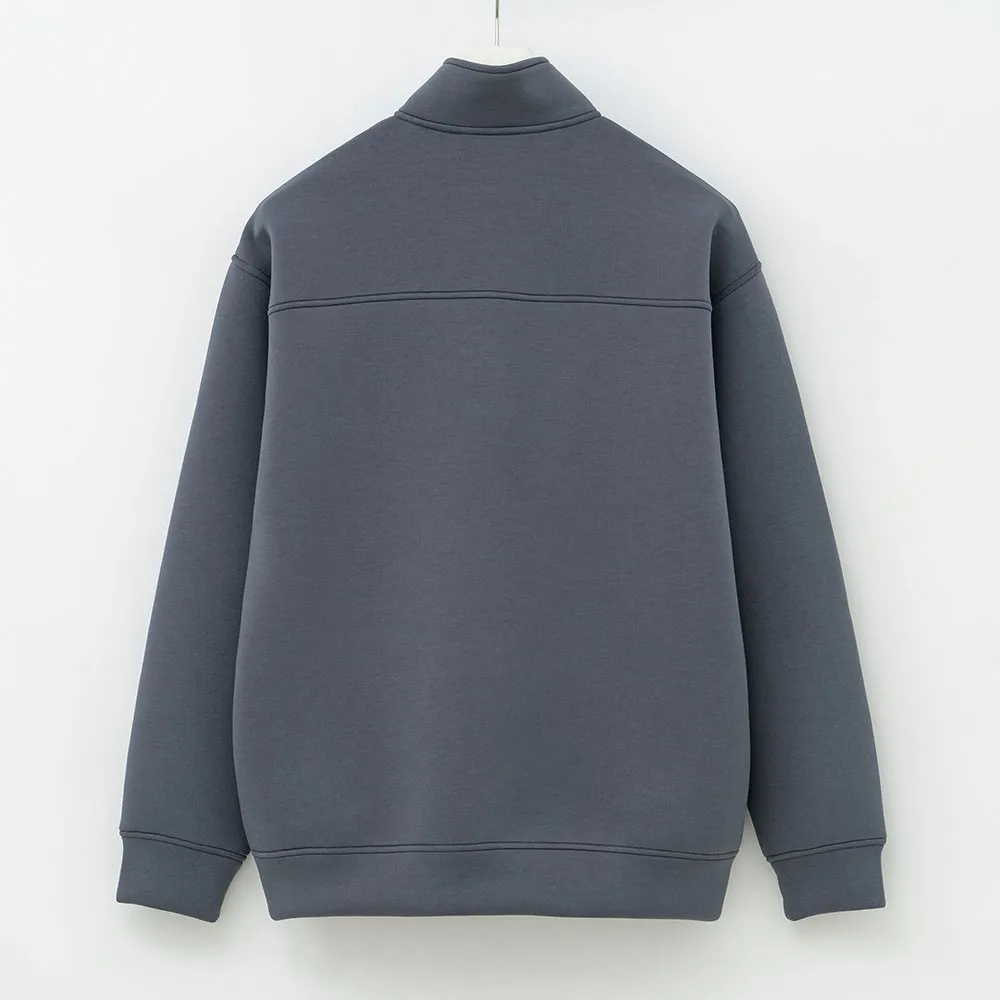 Общая цветовая гамма преимущественно ненасыщенного серого цвета предлагает простой и универсальный стиль, который хорошо сочетается с различными нарядами. Конструкция имеет воротник-стойку с застежкой-молнией на половину длины, что усиливает защиту шеи от ветра и облегчает надевание и снятие.