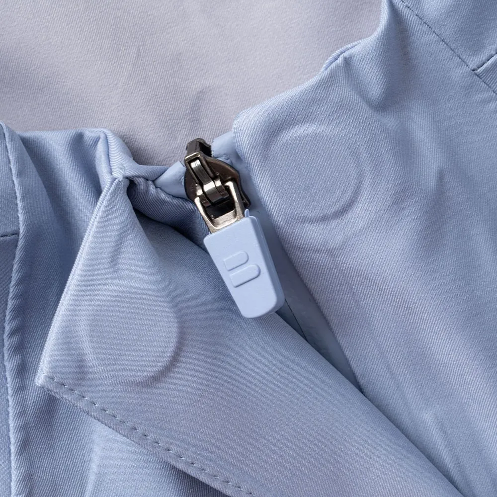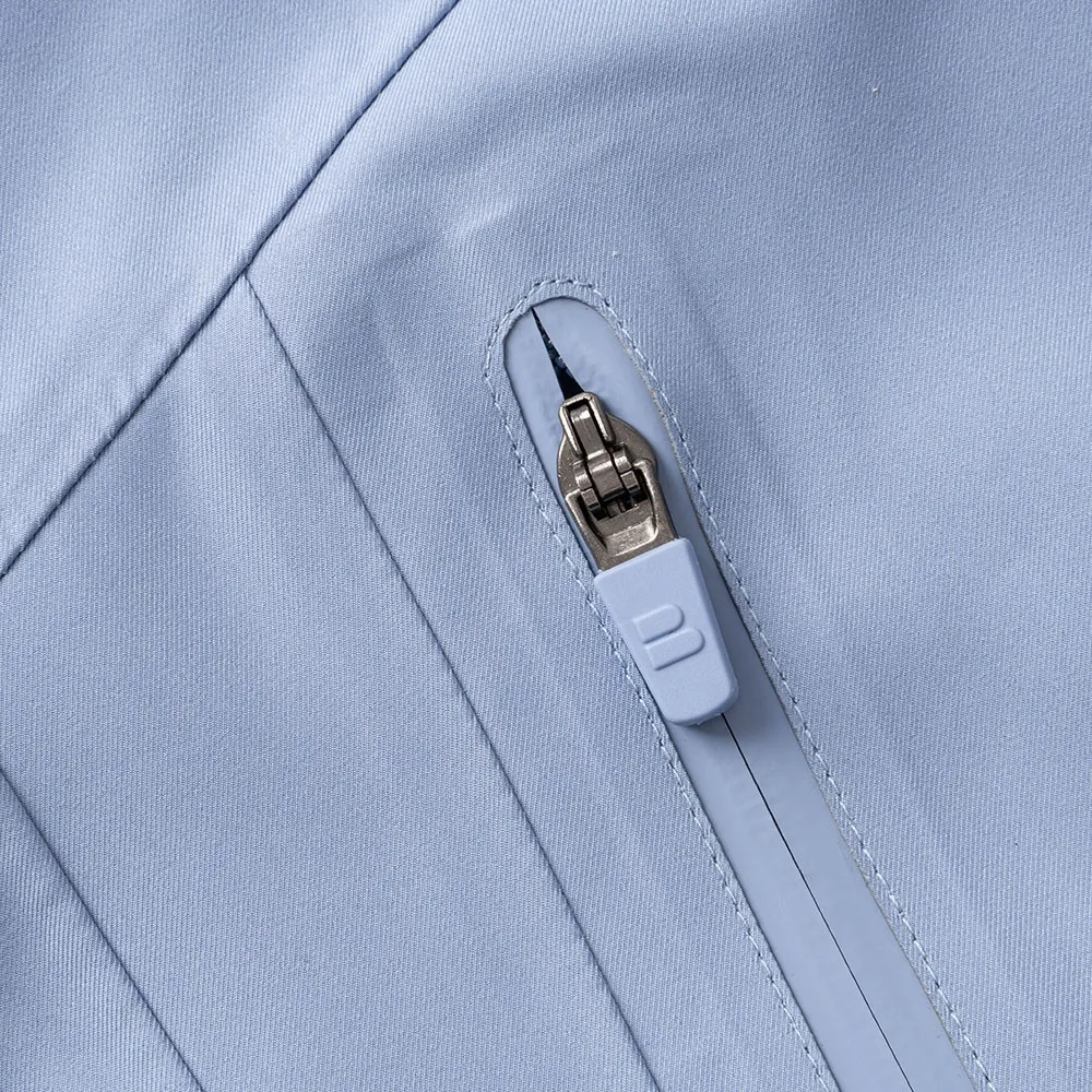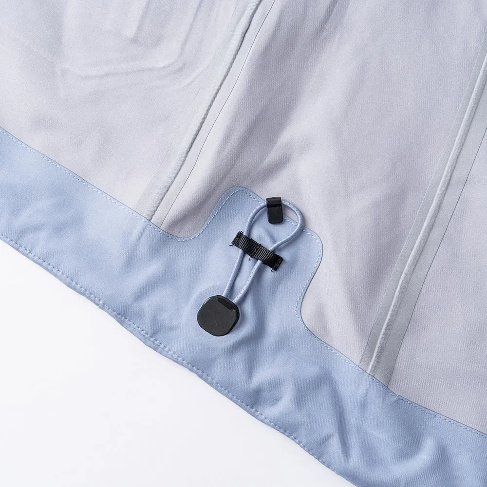 Капюшон имеет регулируемую конструкцию с кнопками для гибкого позиционирования капюшона, а двойная застежка планки (кнопки и молния) дополнительно увеличивает ее воздухонепроницаемость. Куртка имеет диагональный геометрический пэчворк-дизайн, который усиливает минималистичный дизайн и оптимизирует движение плеч и спины, что делает ее подходящей для походов, городского активного отдыха и многого другого.